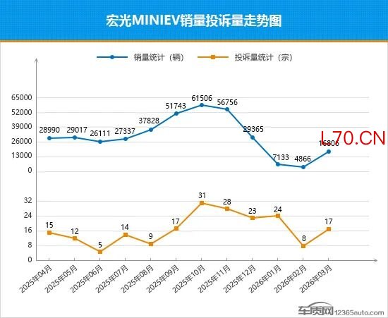 受新能源政策退坡、市场竞争持续加剧等多重因素影响,宏光MINIEV近几个月的市场表现呈现疲态。在经历连续4个月环比下滑后,其月销量在3月迎来强势反弹,环比涨幅超2.4倍。从近一年来的销量走势可以看到,整体呈现出“冲高回落反弹”的态势。3月份,宏光MINIEV推出了第五代车型,不仅针对外观内饰进行了升级,还新增了1款301km续航的车型,产品综合竞争力得到增强,成为拉动销量回暖的核心驱动力。反观其月投诉表现,与销量走势大致相近,整体始终维持在合理区间,口碑表现相对较为稳定。从本月的投诉销量比数值变化来看,较2月有明显降低,在榜单车型中排名前列,表现有所进步。短期来看,宏光MINIEV依托新车型上市的产品红利,销量有望进一步回暖,后续能否重返历史销量巅峰,仍需接受市场的检验,其长期市场表现依然值得期待。