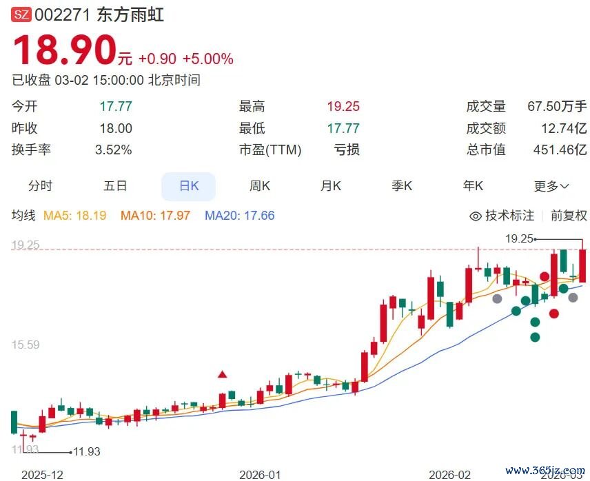 3月2日,东方雨虹大涨5%,市值回升至450亿元,产品提价助推外,有观点认为,伊朗战事势必损毁大量建筑,其将明显受益于战后中东的重建进程。