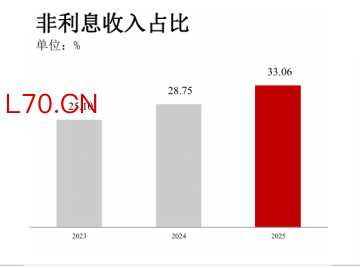 这一转变的核心体现为非利息收入的强劲增长。2025年,中行实现非利息收入2191.61亿元,同比高增19.21%,远快于整体营收增速,在营业收入中占比达33.21%,同比提升4.16个百分点。其中,手续费及佣金净收入同比提升7.37%至822.37亿元;其他非息收入1369.24亿元,同比大涨27.67%。