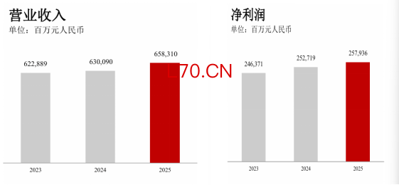 年报显示,2025年中行营业收入6599亿元,同比增长4.28%,增速在国有大行中排名第一;股东应享税后利润2430亿元,同比增长2.18%,增速排名第二。规模方面,截至2025年末,中行总资产突破38万亿,较年初增长9.4%;客户贷款和存款总额分别为23.45万亿元、26.18万亿元,增幅分别达8.61%、8.18%,继续保持均衡增长态势。