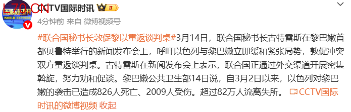 联合国秘书长敦促黎以重返谈判桌