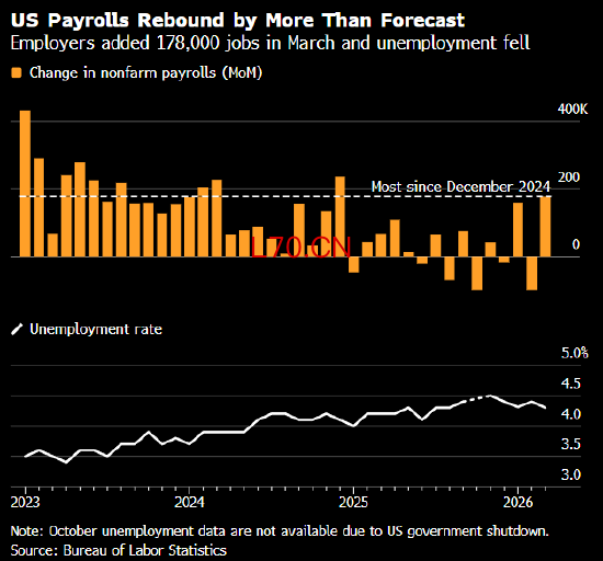 美国3月非农就业人数强劲反弹,失业率意外下降,表明在伊朗战争开始之际劳动力市场在企稳。