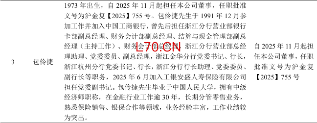 值得一提的是,包伶捷并非保险“门外汉”。公司履历显示其长期分管零售业务,熟悉保险销售、银保合作等领域,业务经验丰富。在利率下行与报行合一政策落地的双重约束下,寿险公司资产负债管理难度显著加大。由银行体系出身的高管主持险企经营,如何完成从银行信贷思维到保险长期经营规律的认知转换,将是其履新后的首要挑战。