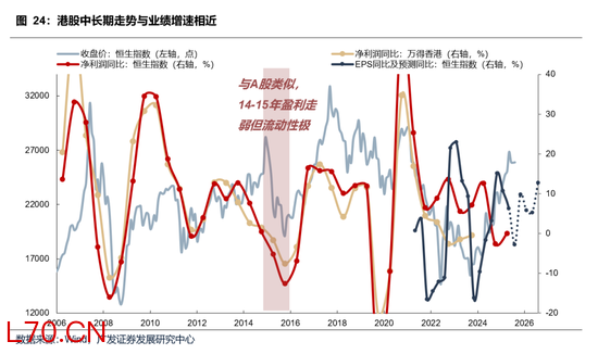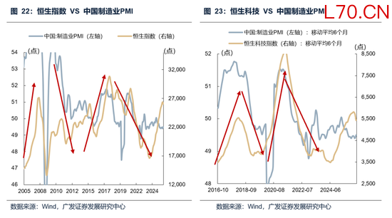 从基本面看,港股市场具有显著的中国资产属性,内资企业市值占比超过七成,其营收与利润与中国内地经济周期深度绑定,恒生指数与恒生科技指数的中长期走势与中国制造业PMI高度相关。在当前国内经济仍处于弱复苏、制造业景气度波动较大的背景下,港股企业盈利端的回升更多依赖于前期低基数或者人民币汇率的走强,而非内生动能的修复,缺乏强有力的向上动能,难以支撑市场走出持续的反转行情。