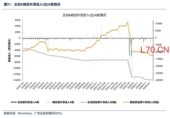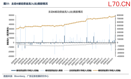 美股主被动资金保持净流入。截至本周三(4月1日—4月8日),美股主动资金净流入53.45亿美元,上周净流入35.21亿美元;被动资金净流入171.71亿美元,上周净流入63.21亿美元。