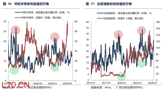 若市场出现上涨趋势,可能触发逼空行情,从而放大反弹力度。从资金面角度分析,一旦市场回暖,做空成交量占比开始回落,可能有助于改善市场流动性环境,对港股形成积极支撑。当前做空占比已达到历史小高峰,后续若出现边际改善,或将为市场带来一定的修复契机。历史上看,无论是小米、美团还是华虹半导体、比亚迪,逼空行情并不少见。