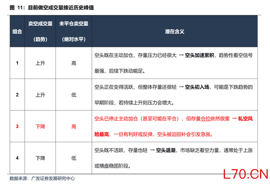 (1)当卖空成交量上升,不论未平仓卖空量的高低→通常会导致市场下跌/上涨动能趋缓。